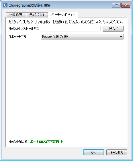 ※ロボットモデルは最初から「Pepper Y20(V16)」になっていましたが、[OK]で再起動させました。