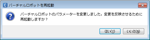 (3)ロボットモデルのリストボックスから「Pepper Y20(V16)」を選択し、[OK]クリックすると再起動するか聞いてくるので「はい(Y)」[OK]を選択