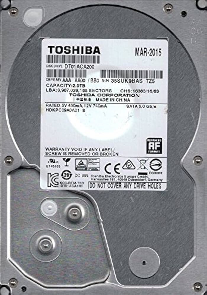 同じのにしようか、メーカーを変えようか、容量はどのくらいにしようか、迷いましたが、同じ東芝で容量が倍のDT01ACA200にしました。