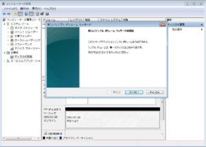 タスクバーのスタートから[管理ツール]-[コンピューターの管理]を起動し、接続したディスクをフォーマットしました。