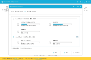 ソースディクス(「ハードディスク0」の方)を選択し、[次へ]をクリックすると以下の画面に。