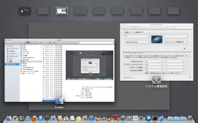 あと、マウスを左下に持っていくと、今まで「アプリケーションウインドウ」が開いてましたが、「Misson Control」に変わっていました。