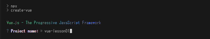 ここでは、「vue-lesson01」としました。