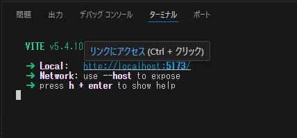 http://localhost:5173にマウスカーソルを合わせると「リンクにアクセス」と表示されます。